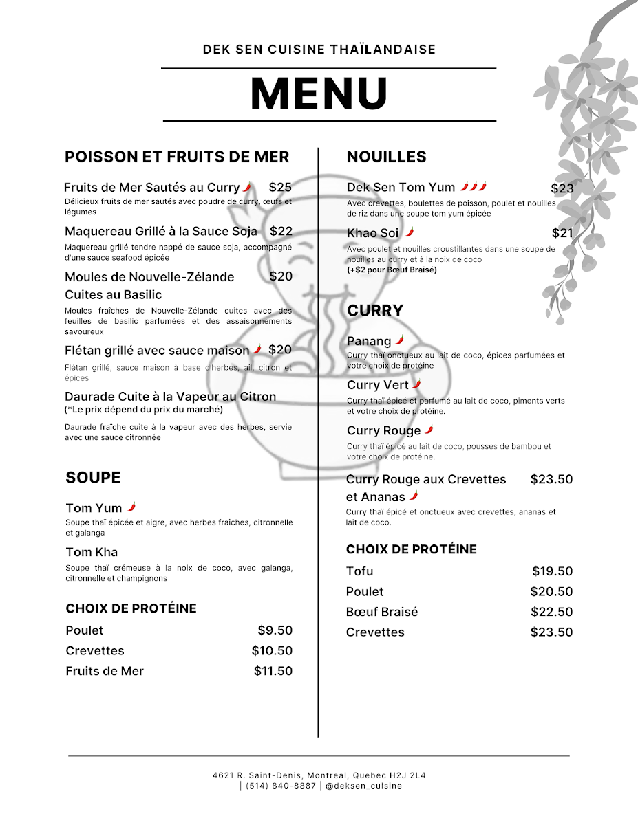Introducing the Menu at DEK SEN CUISINE THAÏLANDAISE
